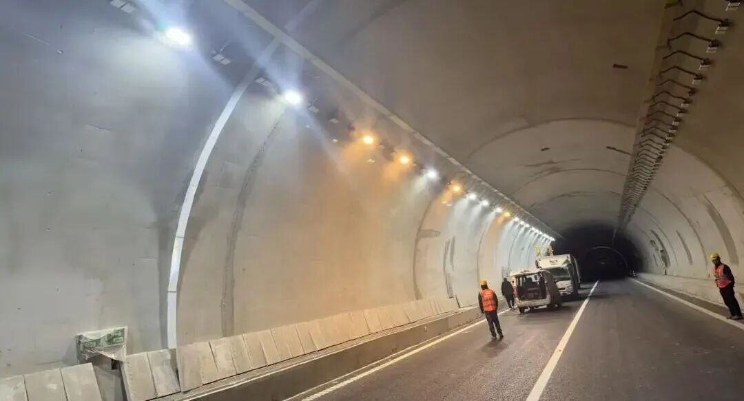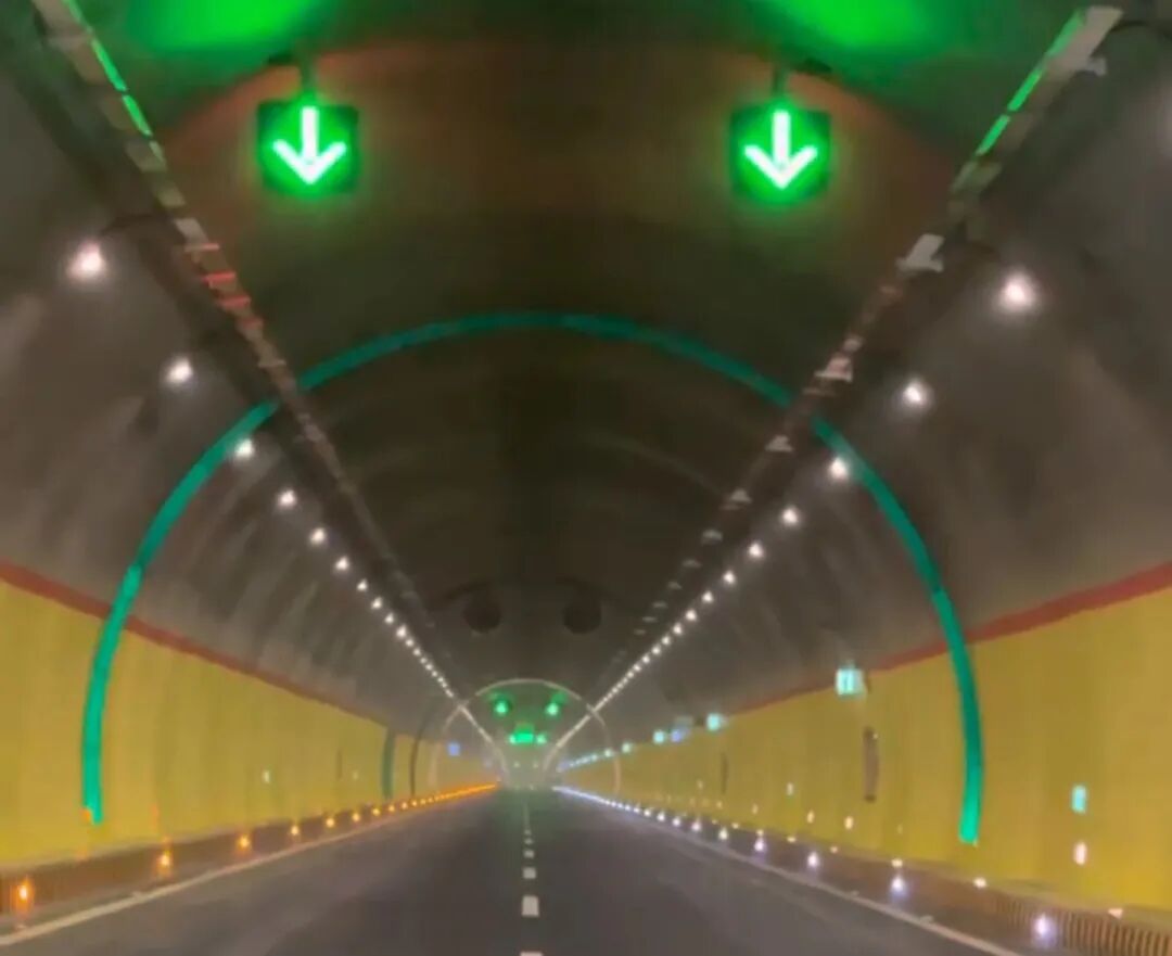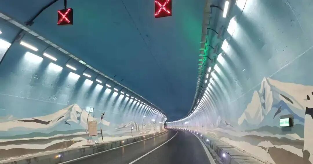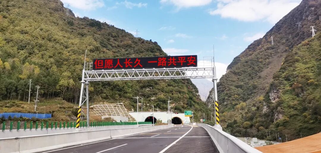 路上设计施工有门架式情报板、隧道灯等智慧交通产品,